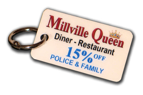 Key Tags Key Tags Keep you name in front of your customer as they drive. Can carry a discount message on the front along with your name, logo and details. In either laminate or synthetic. they come complete with a key ring.