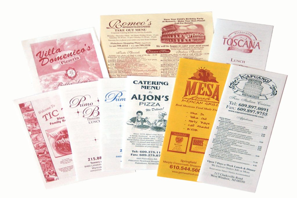 Printed on 80# gloss paper in Full Color 0r 60# plain paper in single or two color.  Can be ordered in as few as 500 pieces up to 25,000 [or even higher!]. Can be handed out or mailed inexpensively via the Post Offices’  EDDM [Every Door Direct Mail] program.